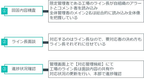 ・アラート従業員への連絡や面談をすべて人事だけで行っており、工数が逼迫している